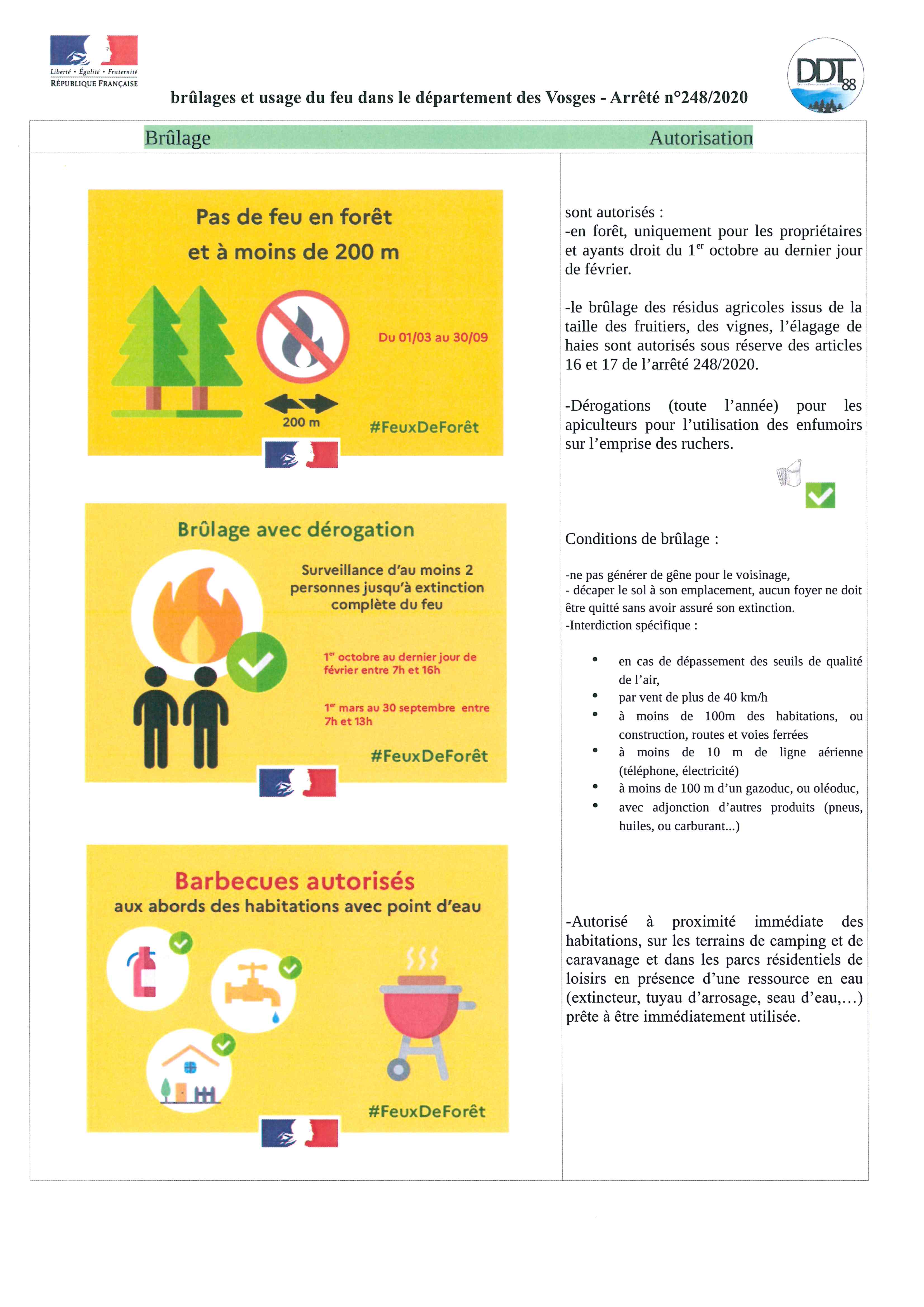 Consulter > l'arrêté n°248/2020 relatif aux brulages et à l'usage du feu dans le département des Vosges