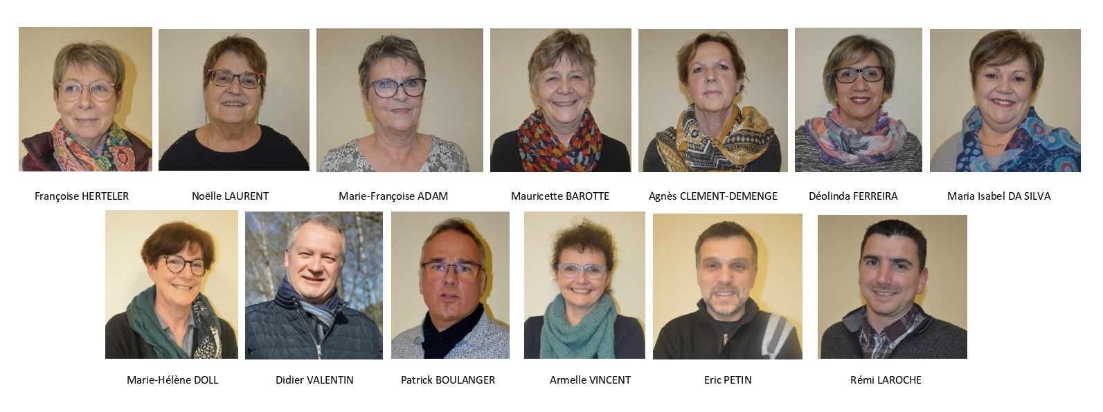 DEMANGE Michel (Maire), LE ROUX Yves (1er adjoint), FAIVRE Danièle (2ème adjointe), MILLOTTE Nathalie (3ème adjointe), RENAUX Sandrine (4ème adjointe), Francis HANS (5ème adjoint), FERREIRA Déolinda, BOULANGER Patrick (conseiller délégué), HERTELER Françoise, BOLMONT David, BAROTTE Mauricette, AMYOT Stéphane, ADAM Marie-Françoise, PETIN Eric, VINCENT Armelle, LEVAIN Jean-Luc, CLEMENT-DEMENGE Agnès, LAROCHE Rémy, LAURENT Noëlle, VALENTIN Didier, DA SILVA Isabel, DOLL Marie-Hélène, ARNOULD Carole, EL MAZIOUA Amani, LABREUCHE Denis, MATHIEU Jean-Guillaume